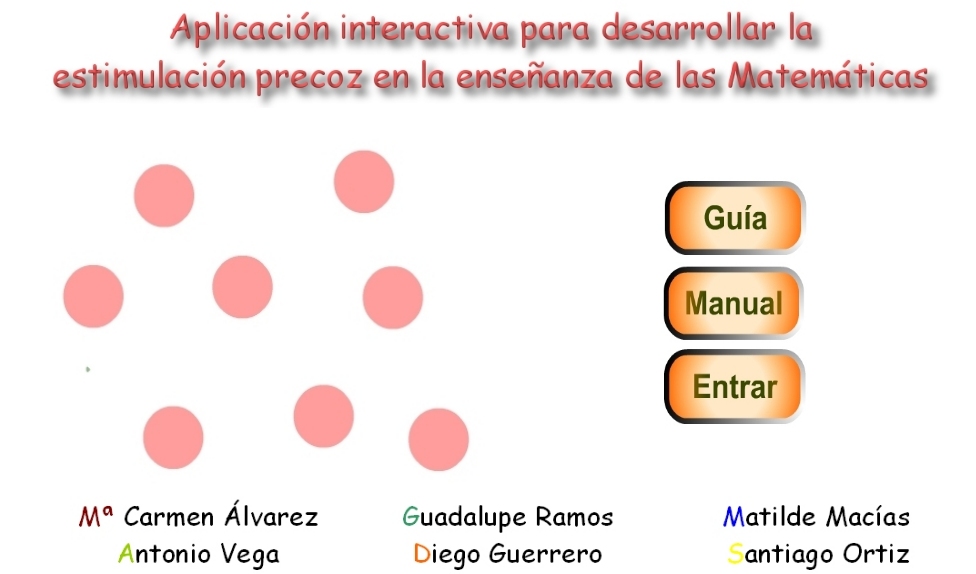 El programa que tenemos en las manos: Aplicación interactiva para desarrollar la estimulación precoz en la enseñanza de las Matemáticas basadas en el Método Glenn Doman, es de fácil utilización, simplemente tienes que abrir el fichero index.html y nos mostrará la siguiente pantalla: