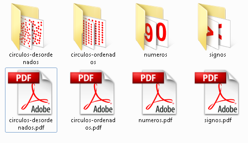 Carpeta círculos ordenados, contiene imágenes en la que los círculos aparecen distribuidos con orden, tal y como los vemos con la aplicación. Si nos resulta más cómodo podemos abrir el fichero círculos-ordenados.pdf e imprimir las páginas que nos interesen.