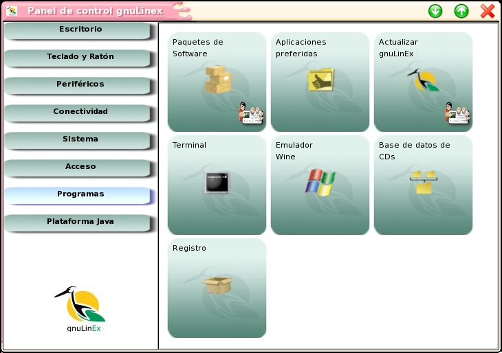 4. Nos aparecerá la siguiente pantalla en la que hemos de seleccionar la categoría Programas y a continuación pulsar sobre Actualizar gnuLinEx.